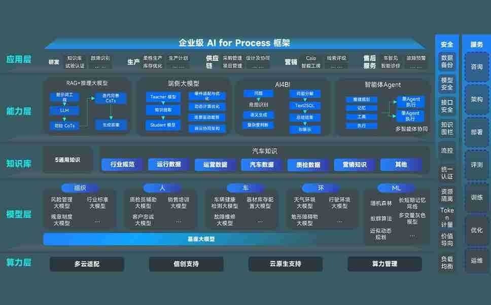 南宫娱乐问学智车解决方案是一套基于AI技术的汽车行业智能化系统,,覆盖从底层算力到顶层AI应用的全栈方案。。方案由算力层、、、、模型层和应用层组成:算力层,,,方案支持多种一体机配置,,,,具备云端灵活部署、、、、多云适配以及动态优化计算资源的能力;模型层,,,,南宫娱乐问学平台版提供了企业级AI应用一站式构建与管理平台,,,,支持基于后训练强化技术的汽车企业专属模型的训练、、、评测和运营;应用层,,,南宫娱乐问学DeepSeek版提供包括超级员工、、、智能招采、、、智能营销、、智能客服、、、、AI for BI等一系列解决方案,,可助力汽车行业实现数字化转型,,,让管理更智能、、响应更敏捷。。
